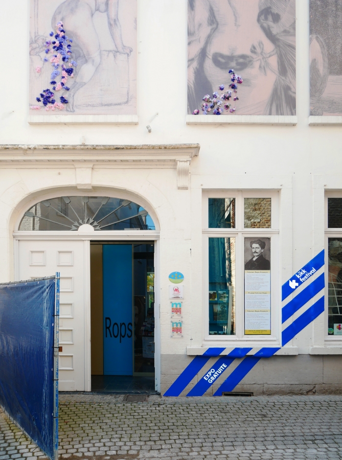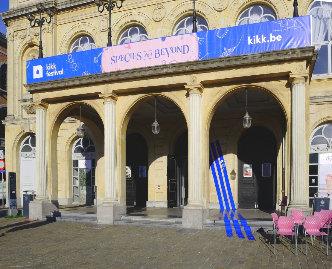 Pour la 1è fois le festival des cultures digitales KIKK propose un parcours à travers la ville de Namur dans des lieux parfois insolites. Il fallait un élément modulable, simple à placer à l'extérieur et temporaire pour marquer les différents lieux du parcours.