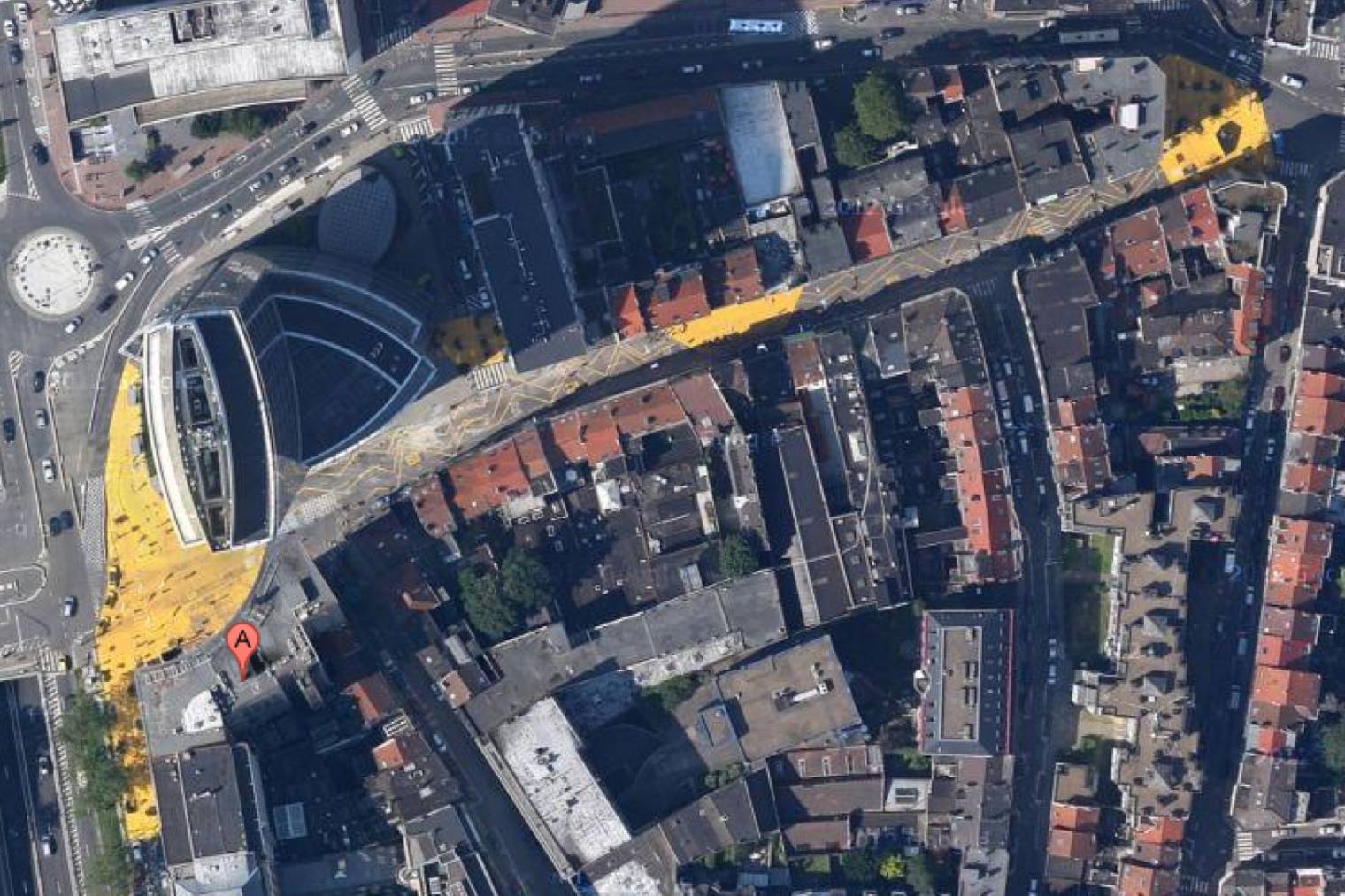 Le bureau d’architecture Suède 36, en charge de la mission, nous a consulté pour concevoir une installation artistique favorisant la déambulation et unifiant les différentes zones du projet général. Une installation temporaire avec d'anciennes voitures peintes et plantées d’arbustes, des manchons à air dans le vent de la tour Madou, des éléments fitness de rue, des bacs à plantes, des forêts de potelets, des chaises de récupération rivées au sol, le tout enrobé de couleur jaune...