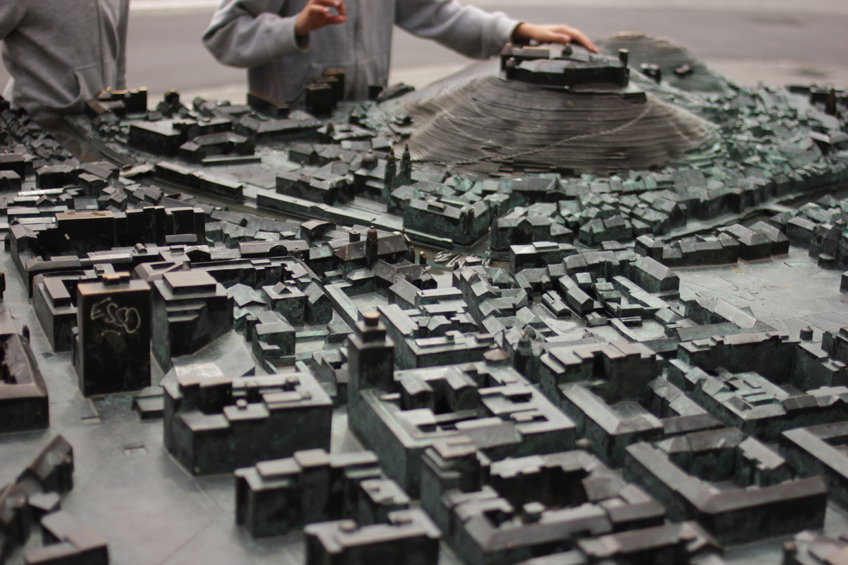 Il en résulte un kit composé d’écussons directionnels se plaçant sur les poteaux existants, de hublots cartographiques sur les façades, de peintures murales sur murs aveugles, de clous au sol, et d’une carte tridimensionnelle.